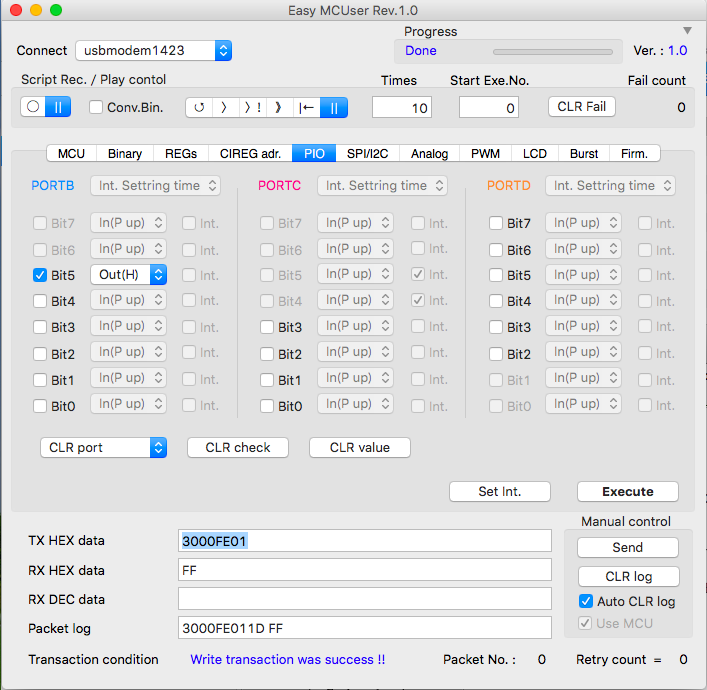この様に、Easy MCUser を使えば PC からマウスの操作だけで簡単にマイコンを制御出来ます。