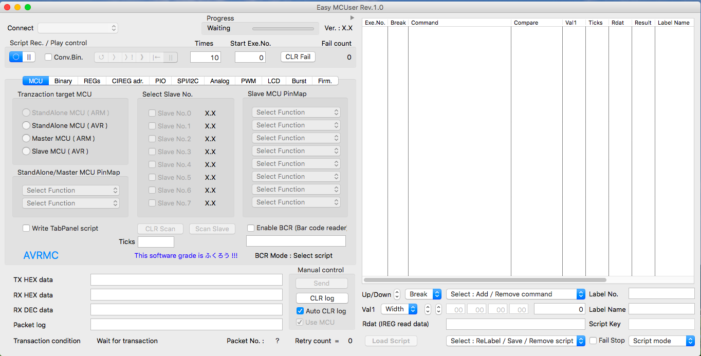 この様に「Easy MCUser」を使う事で、プログラムを組まずにマイコンが持っている機能を GUI で 操作し、AVR マイコンと接続されたデバイスを制御出来る様になります。そして、デバイスの機能や特性が簡単に試せる様になります。