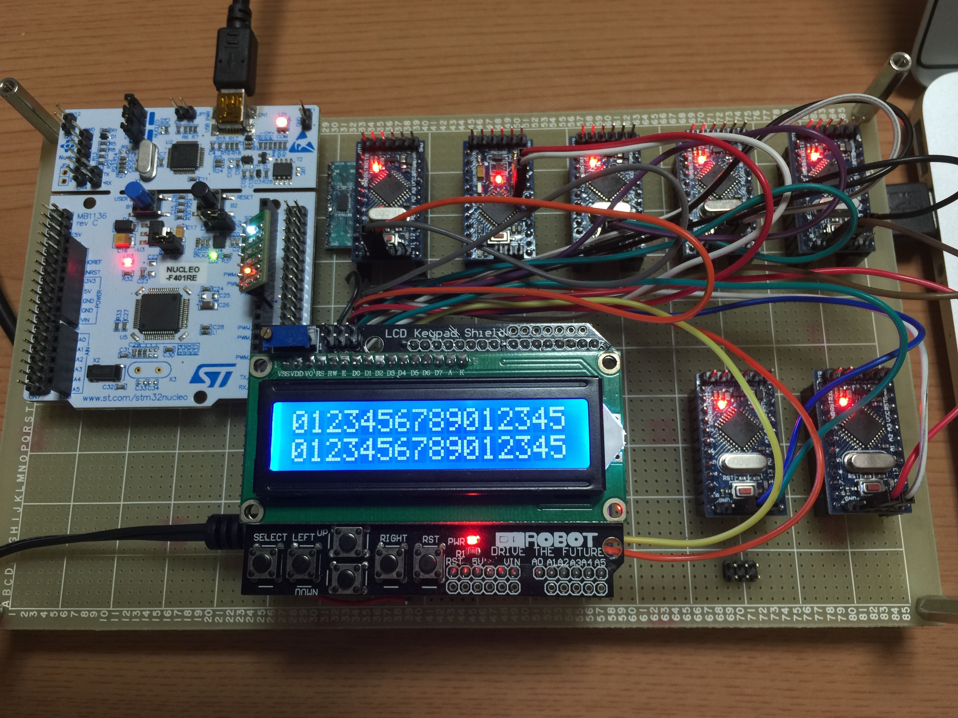 下記の写真は、現在試作で動作確認をしたボードです。後々、AVRMCではスレーブMCUを4台,8台…と、簡単に接続出来るマザーボードも企画中です。